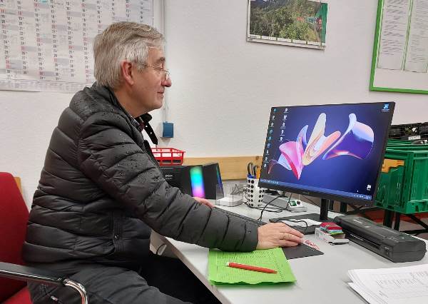 Nicht nur Geschäftsführer Lang freut sich über einen neuen, zeitgemäßen PC und entsprechende Software. Beides konnte Dank der finanziellen Unterstützung aus der 13. Lidl-Pfandspenden-Aktion angeschafft werden.